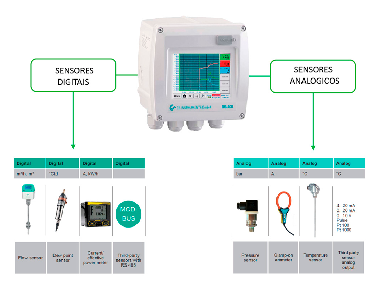 – Análise de corrente, tensão, medição do fator de potência e cálculo da potência real (por compressor);